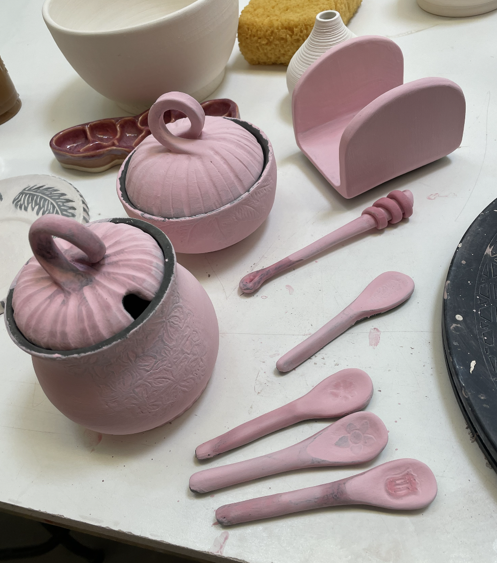 This tea set reimagines domesticity through a lens of power and deception, inspired by the historical poisoner Giulia Tofana. The assassin’s teapot, with its dual-chambered design, embodies both hospitality and hidden danger. Sgraffito carvings of poisonous plants like belladonna and hemlock create a bold, linocut-inspired aesthetic, blending traditional techniques with graphic contrast. Though fully functional, this set is ultimately a conceptual meditation on femininity, agency, and subterfuge.